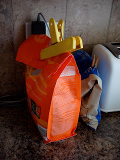 Take the other evening at kibble time. She picks up the scoop, opens the bag and tries to give me…. Potato chips!! So once again, GG, fyi: cats are not fond of potatoes in any form or colour.